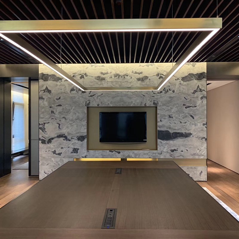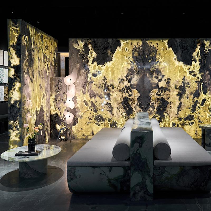 Alliez la beauté de la nature à la technologie moderne pour créer un point focal visuel véritablement unique. Un mur d'accent en marbre rétroéclairé est obtenu en plaçant des bandes lumineuses LED derrière du marbre translucide (comme certains types de Statuario ou d'Onyx) ou des panneaux composites en pierre ultra-minces.