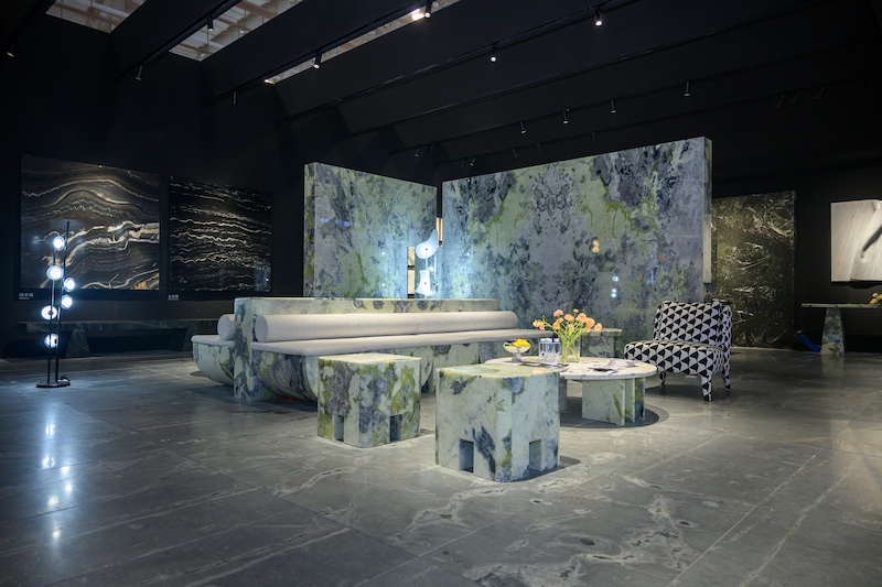 L'art que vous pouvez toucher :Nous avons audacieusement façonné des tables et des chaises complètes en pierre verte, démontrant ainsi qu'il ne s'agit pas simplement d'un matériau de surface, mais d'un médium artistique malléable.