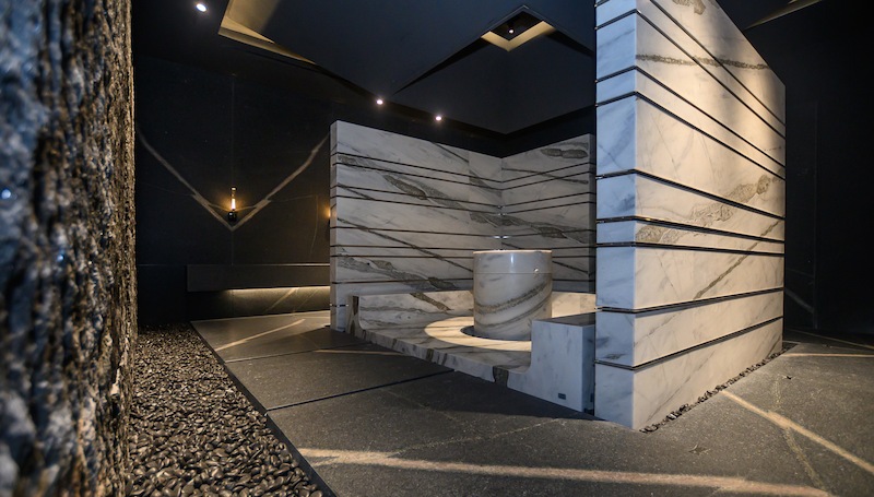 Conçu par un designer de renom, cet espace était un modèle d'intégration profonde de la pierre et de l'art. Centré autour de la structure translucideJade de Pantagonieet complétés par des pierres aux tons chauds commeNamcoetFioritaL'ensemble des lieux dégageait une ambiance sereine et élégante.
