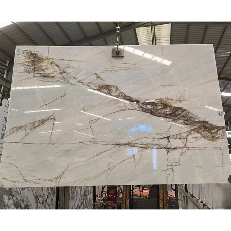 Le marbre Dione Spider est un marbre blanc naturel haut de gamme, orné d'élégantes veines grises en forme d'araignée. Son motif unique et sa surface polie en font un matériau idéal pour les murs, les sols, les plans de travail et les projets décoratifs intérieurs. Issu de carrières de qualité, il allie beauté, durabilité et polyvalence pour créer des espaces modernes et luxueux.